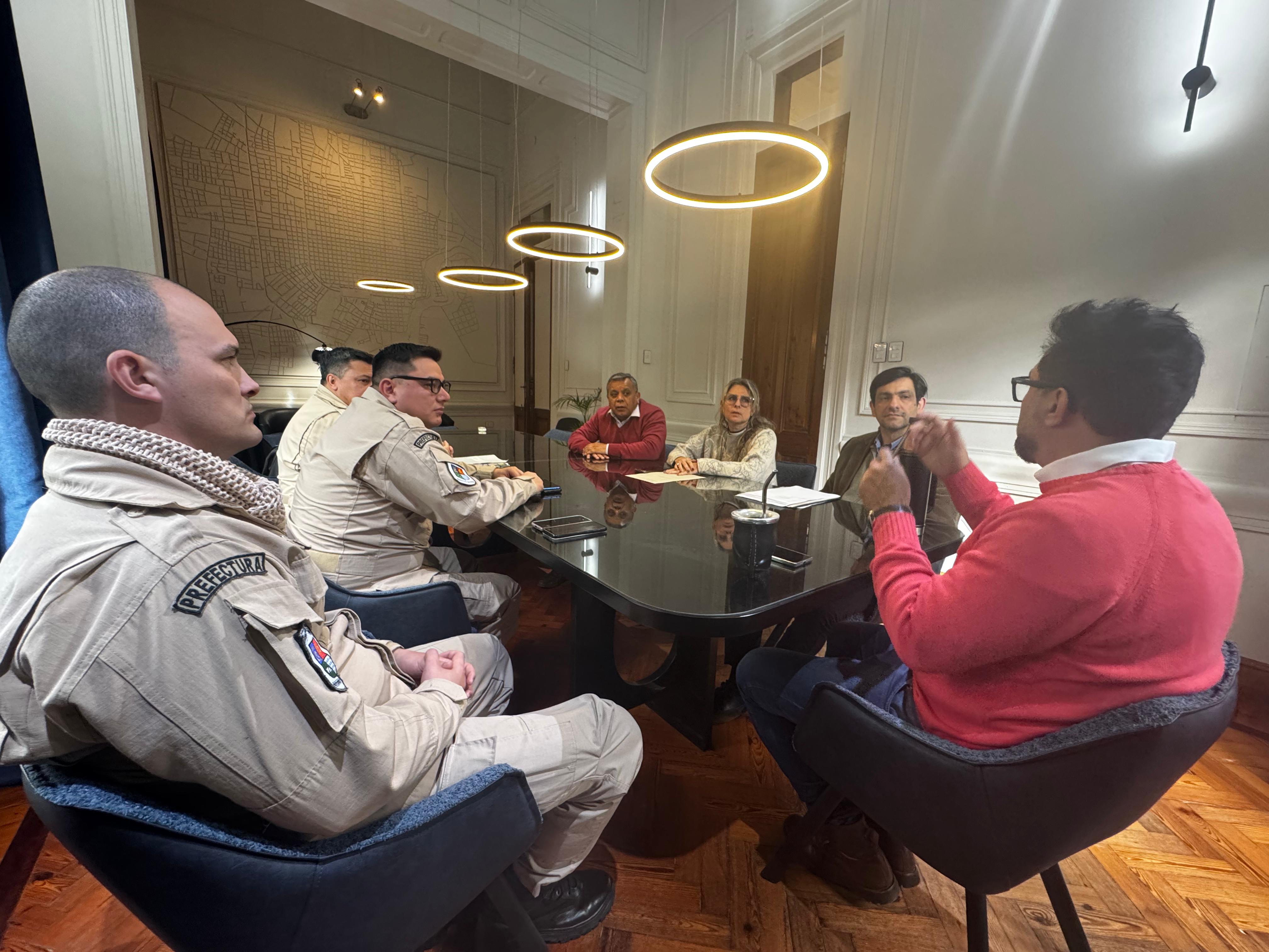 La semana pasada, en el Salón Azul de la Municipalidad, se llevó a cabo una reunión entre autoridades de la Prefectura Naval Argentina y representantes del Municipio, con el objetivo de coordinar acciones conjuntas en materia de seguridad, prevención y control en la ciudad.