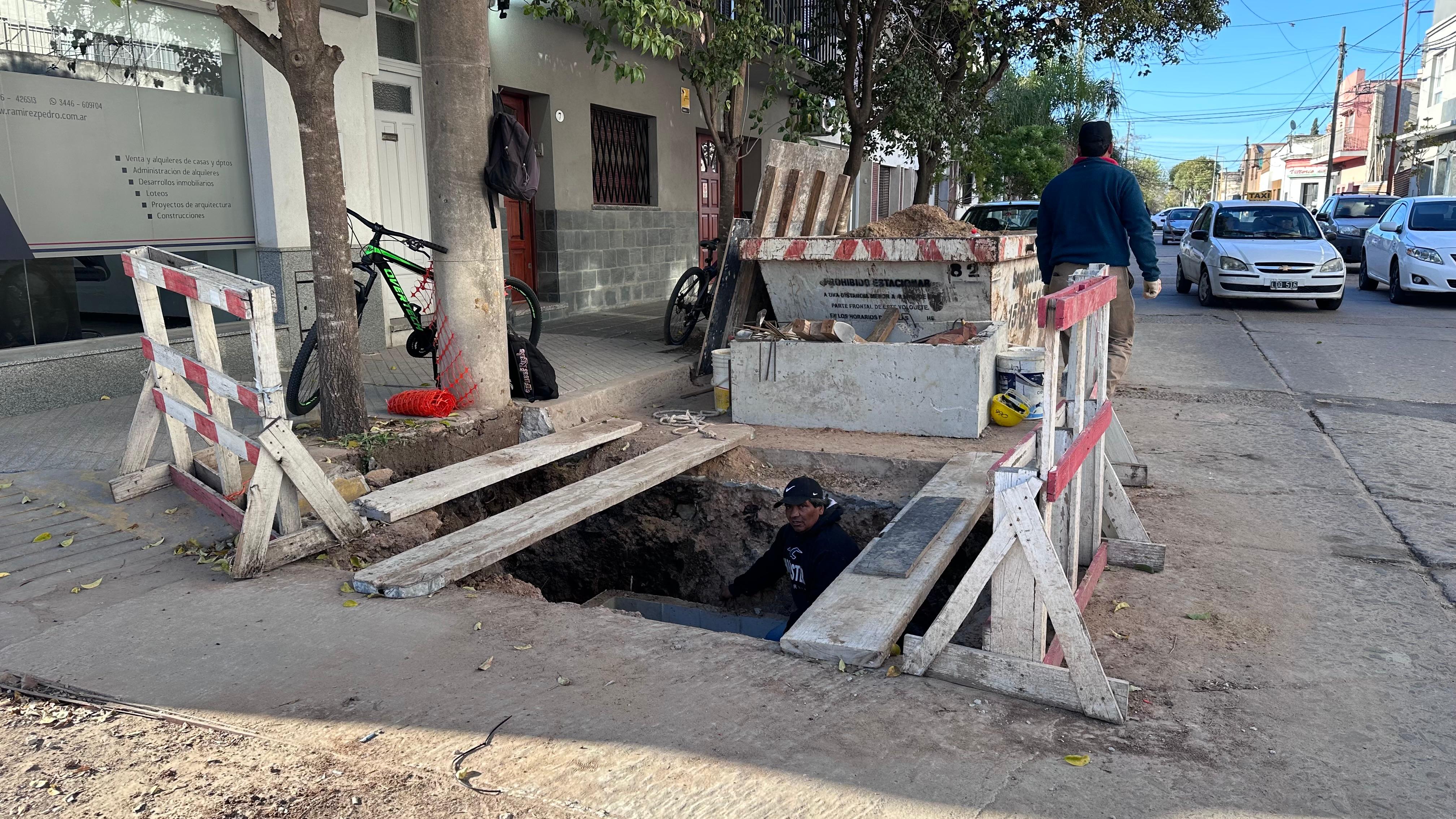 Las dos cámaras de inspección en ejecución son estructuras de gran envergadura: poseen tres compartimientos cada una y alcanzan una profundidad superior a los tres metros, lo que permitirá acceder a la cañería en caso de inconvenientes futuros, sin necesidad de romper el asfalto.