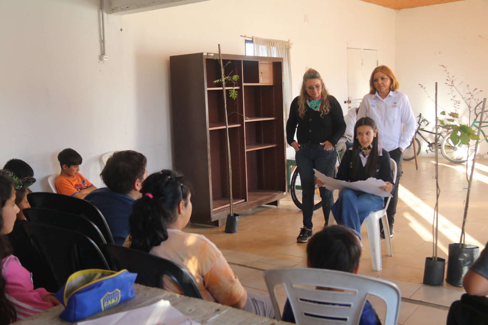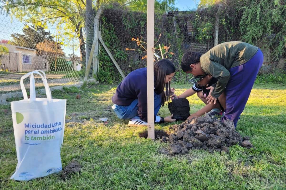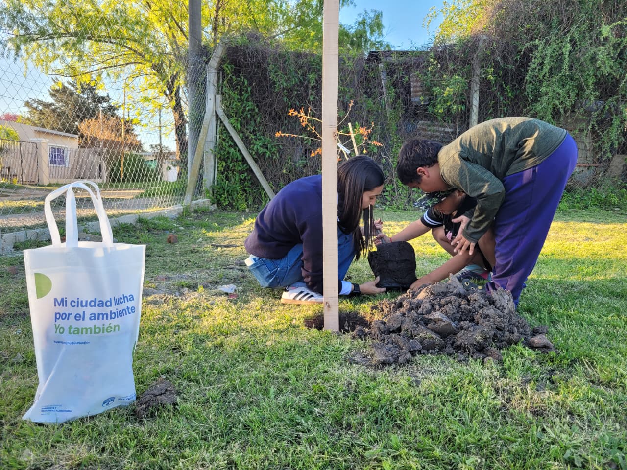 En el marco del Programa de Educación Ambiental, los chicos que asisten a clases de apoyo en el SUM del barrio La Cuchilla participaron en una actividad de plantación de árboles, cuentos y aprendizaje sobre el cuidado del ambiente.