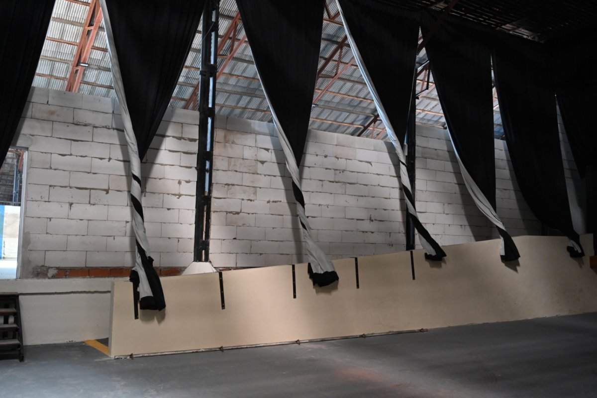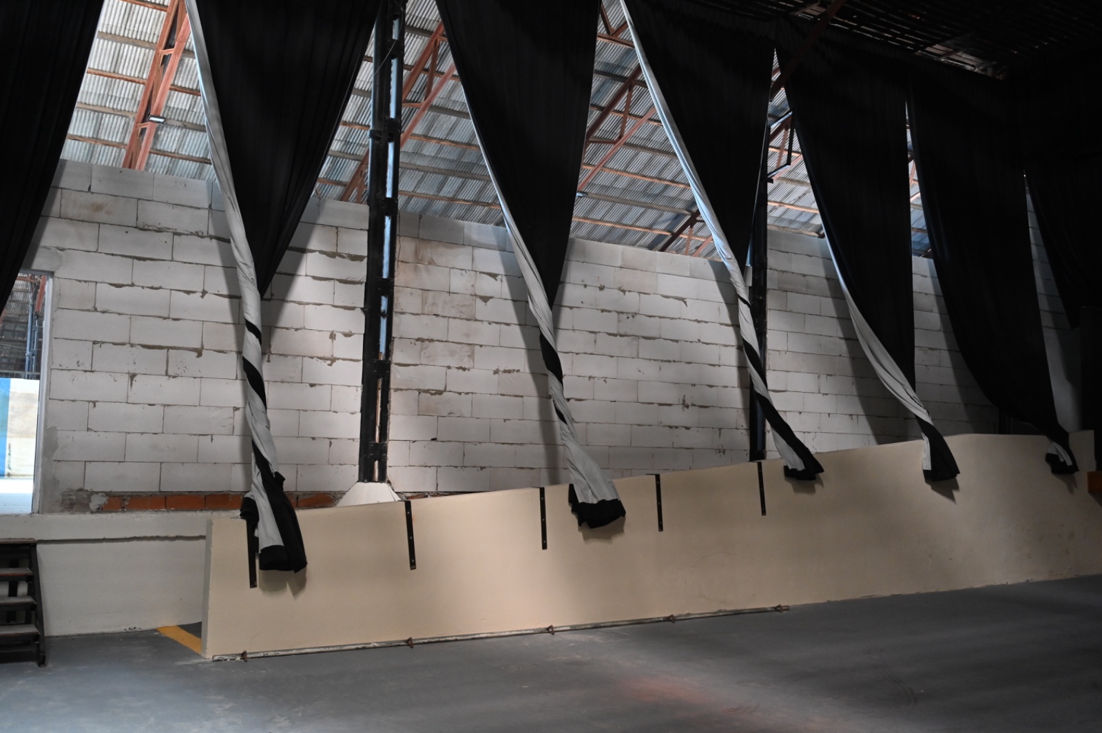 El objetivo es que la pared que separa el Teatro del Puerto con el resto de los espacios de los Galpones del Puerto aísle ambos espacios para que puedan funcionar de manera independiente y autónoma sin importar la actividad que tenga lugar en cada uno.