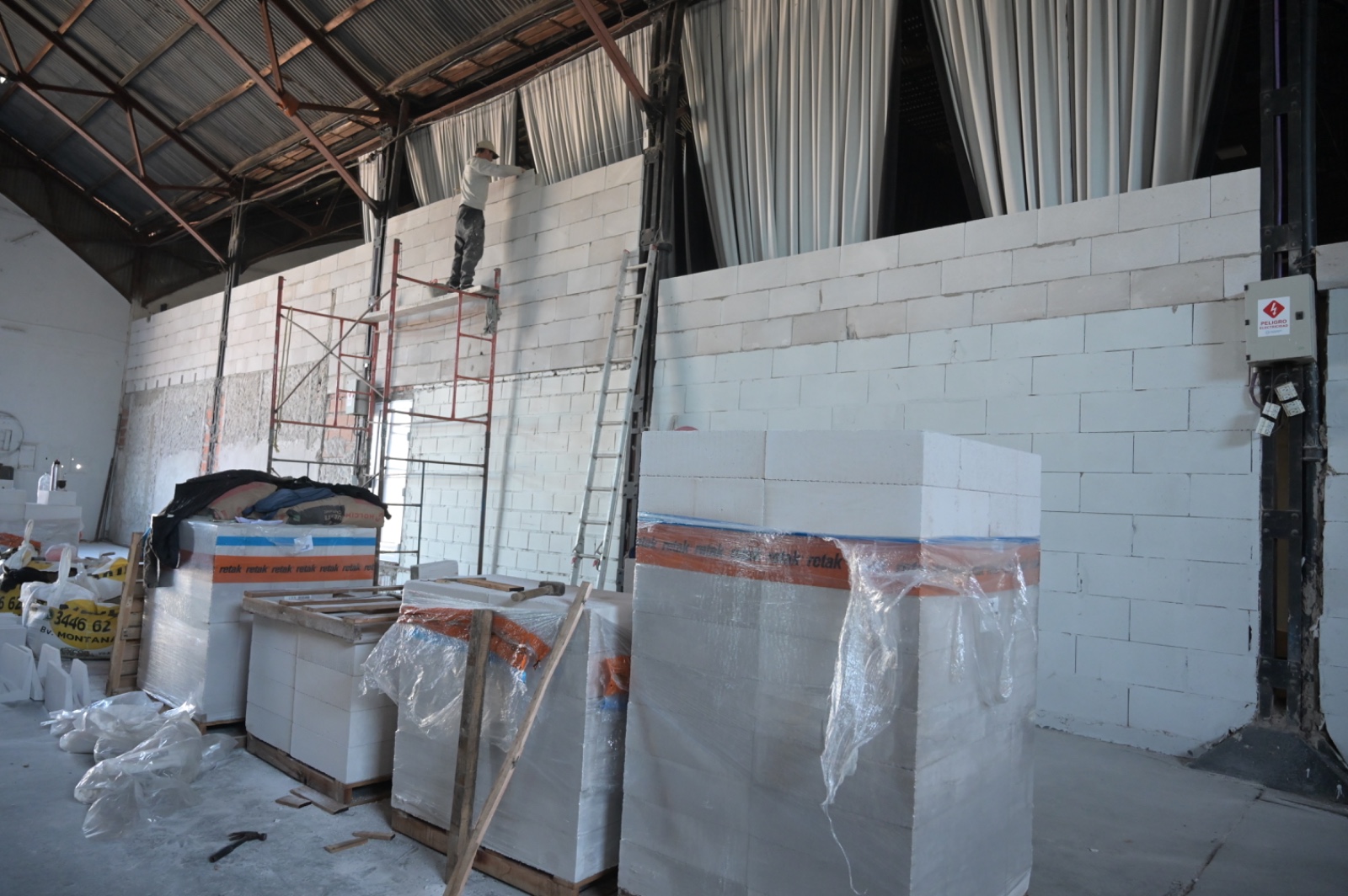 La intervención actual incluye la reconstrucción de paredes internas para completar el cerramiento hasta el techo. Para esta tarea se utilizan bloques Retak, un material liviano y de alta aislación térmica y acústica. A diferencia del sistema tradicional, los Retak se colocan con pegamento especial en lugar de cemento, lo que permite una ejecución más prolija, rápida y eficiente.