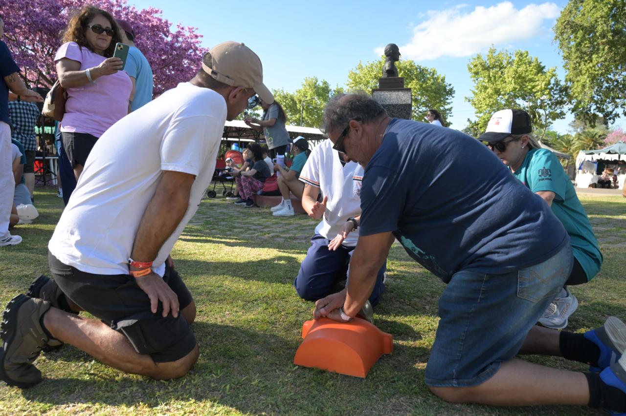 La capacitación fue dinámica y participativa: el público acompañó el ritmo de las compresiones con aplausos y golpes en el piso, simulando la cadencia real de la RCP. De esta manera, cualquier persona, sin necesidad de equipamiento ni conocimientos previos, pudo incorporar herramientas concretas para salvar vidas y transmitir lo aprendido a otros.