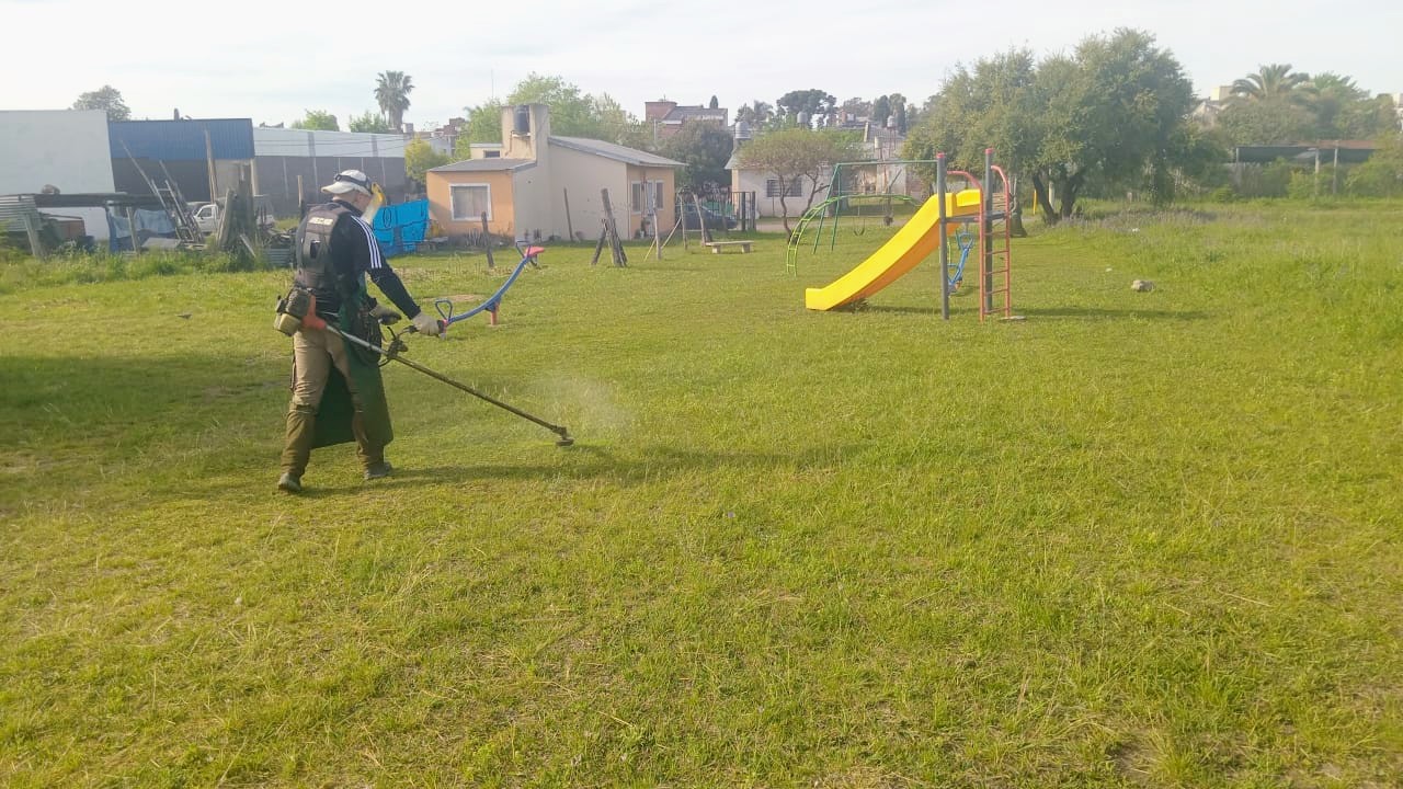 En este contexto, se realizaron trabajos de corte de pasto en el Paseo La Delfina, el Vía Crucis, diferentes sectores del Parque Unzué, el Polideportivo Sur, la cancha del Curita Gaucho, la plaza municipal del barrio Vicoer de Rioja y el predio de Empleados de Comercio.