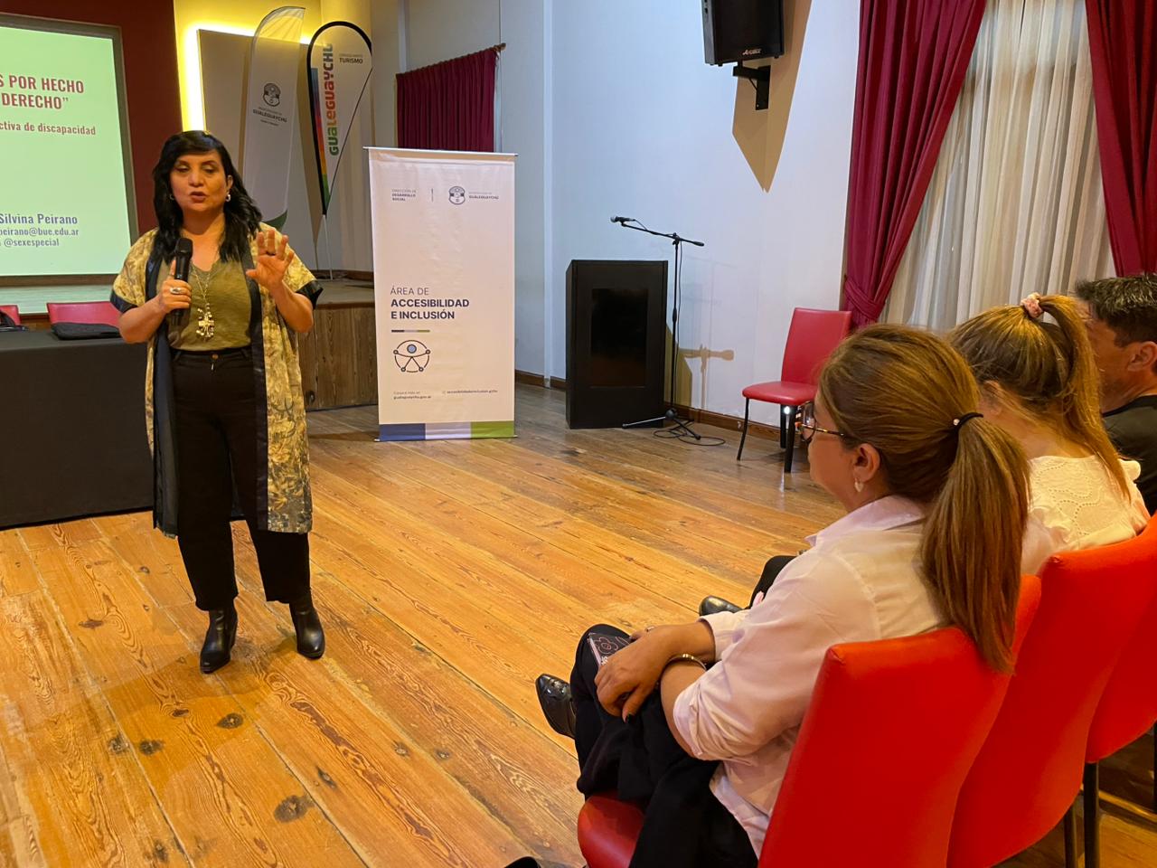 Este viernes se llevó a cabo en el Centro de Convenciones la primera actividad del Mes de la Inclusión: la Jornada de Formación “Educación Sexual Integral con perspectiva de discapacidad”, a cargo de Silvina Peirano, profesora de Educación Especial y especialista en Sexualidad y Diversidad Funcional. La propuesta inauguró un ciclo de encuentros de reflexión, capacitación y sensibilización impulsados por el Área de Accesibilidad e Inclusión, dependiente de la Secretaría de Desarrollo Humano.