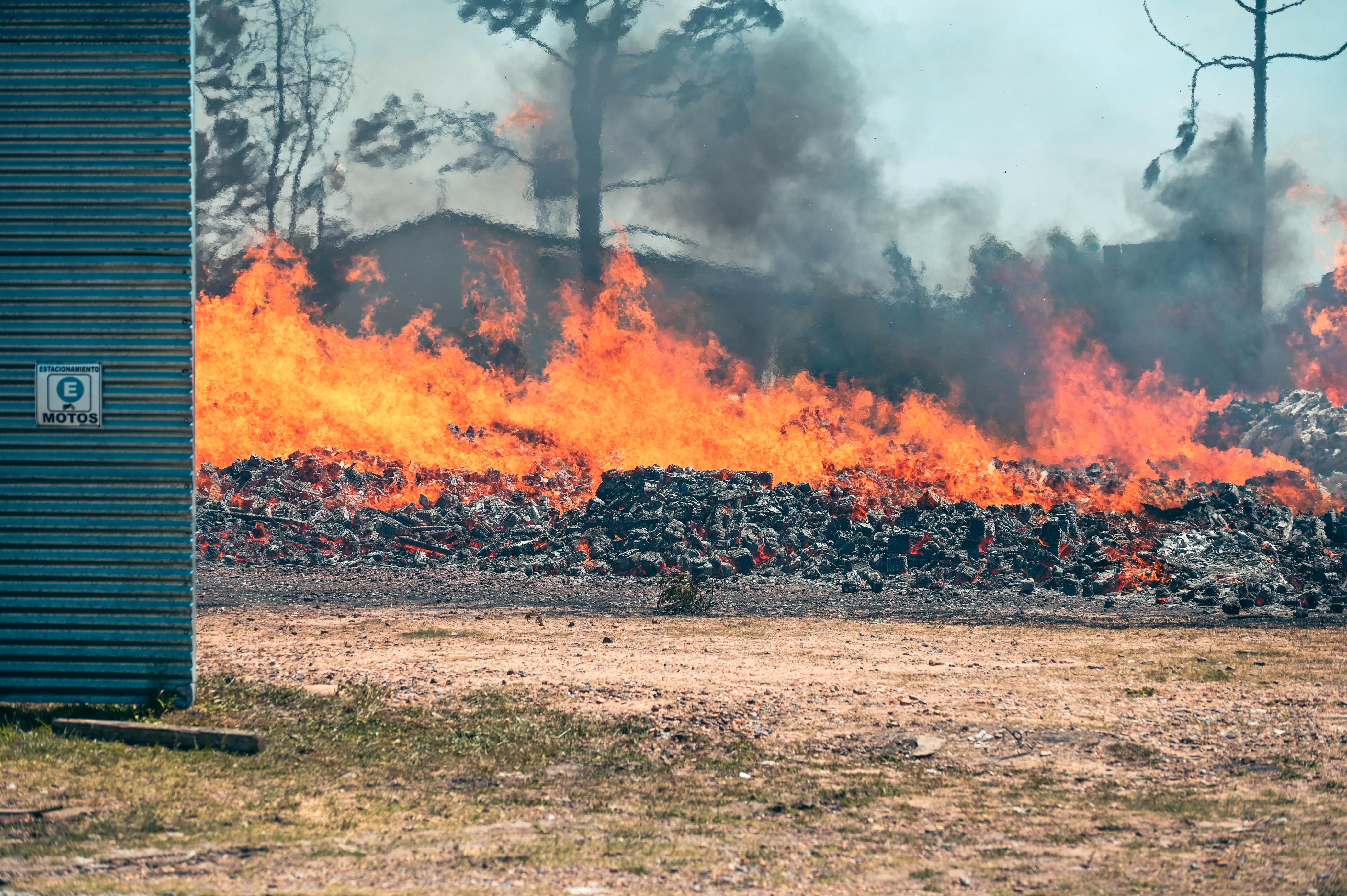 En horas del mediodía de este martes, un importante incendio se registró en un depósito logístico al aire libre ubicado dentro del Clúster del Acceso Sur, a pocos metros de la rotonda del Cristo. El siniestro afectó aproximadamente dos mil metros cuadrados de materiales, entre ellos pallets, cartón prensado y otros elementos, además de un vehículo que también resultó alcanzado por las llamas.