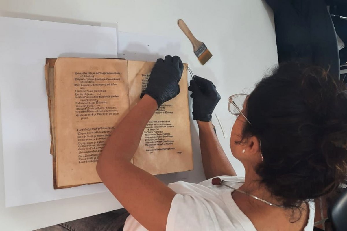 El ejemplar pertenece al Seminario Concordia de la Iglesia Evangélica Luterana Argentina (IELA). En el marco de un convenio celebrado entre el Seminario y la Dirección de Cultura, el libro fue trasladado desde la localidad bonaerense de José León Suárez hasta el Centro Documental, donde se llevó adelante un cuidadoso proceso de conservación preventiva y digitalización integral.