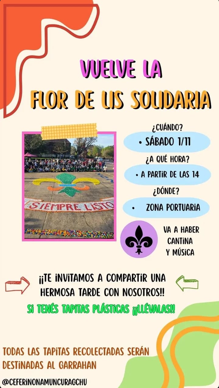 Este sábado 1 de noviembre, la zona portuaria será sede de la “Flor de Lis Solidaria”, una jornada con música, cantina y recolección de tapitas para el Hospital Garrahan.