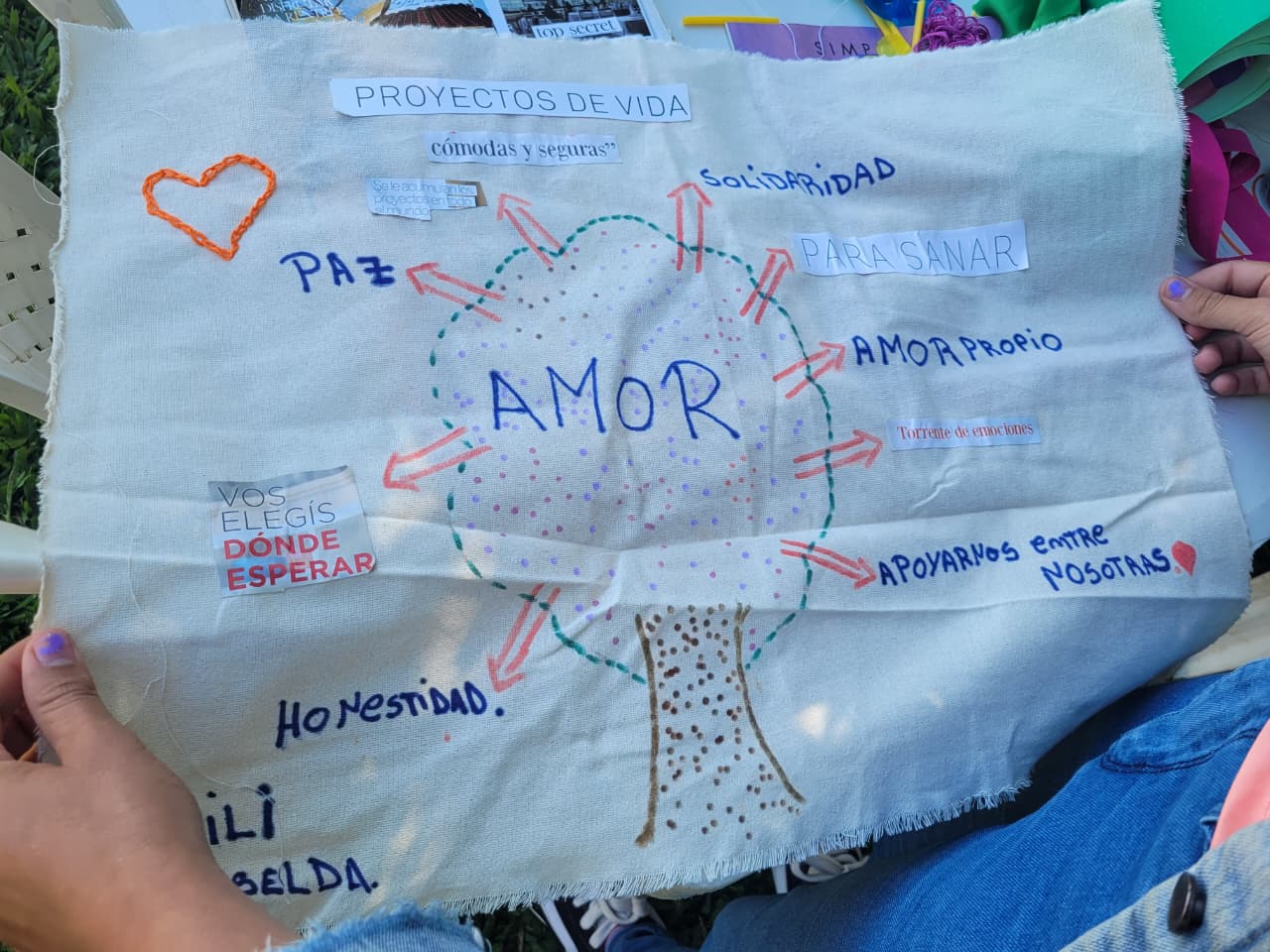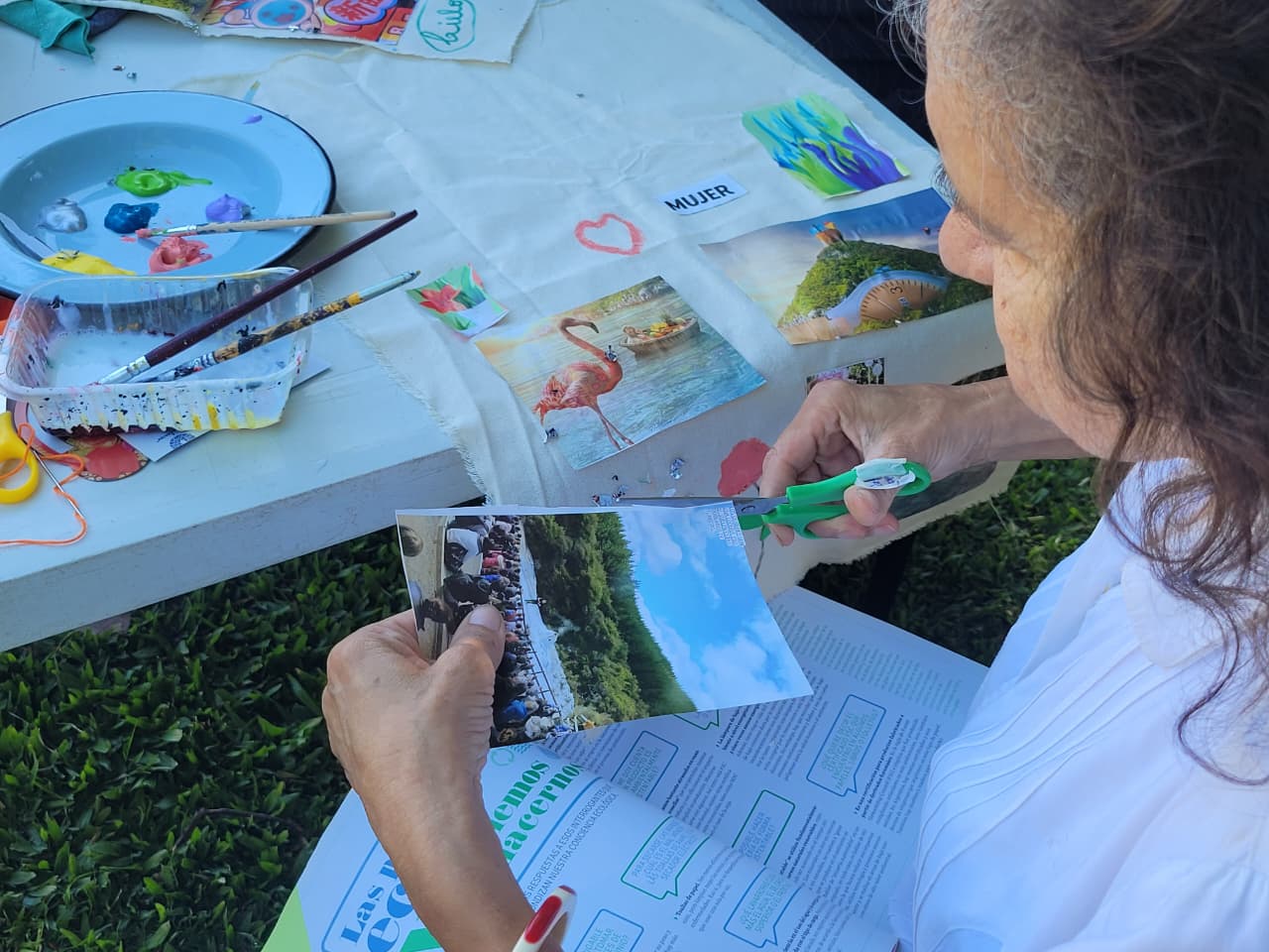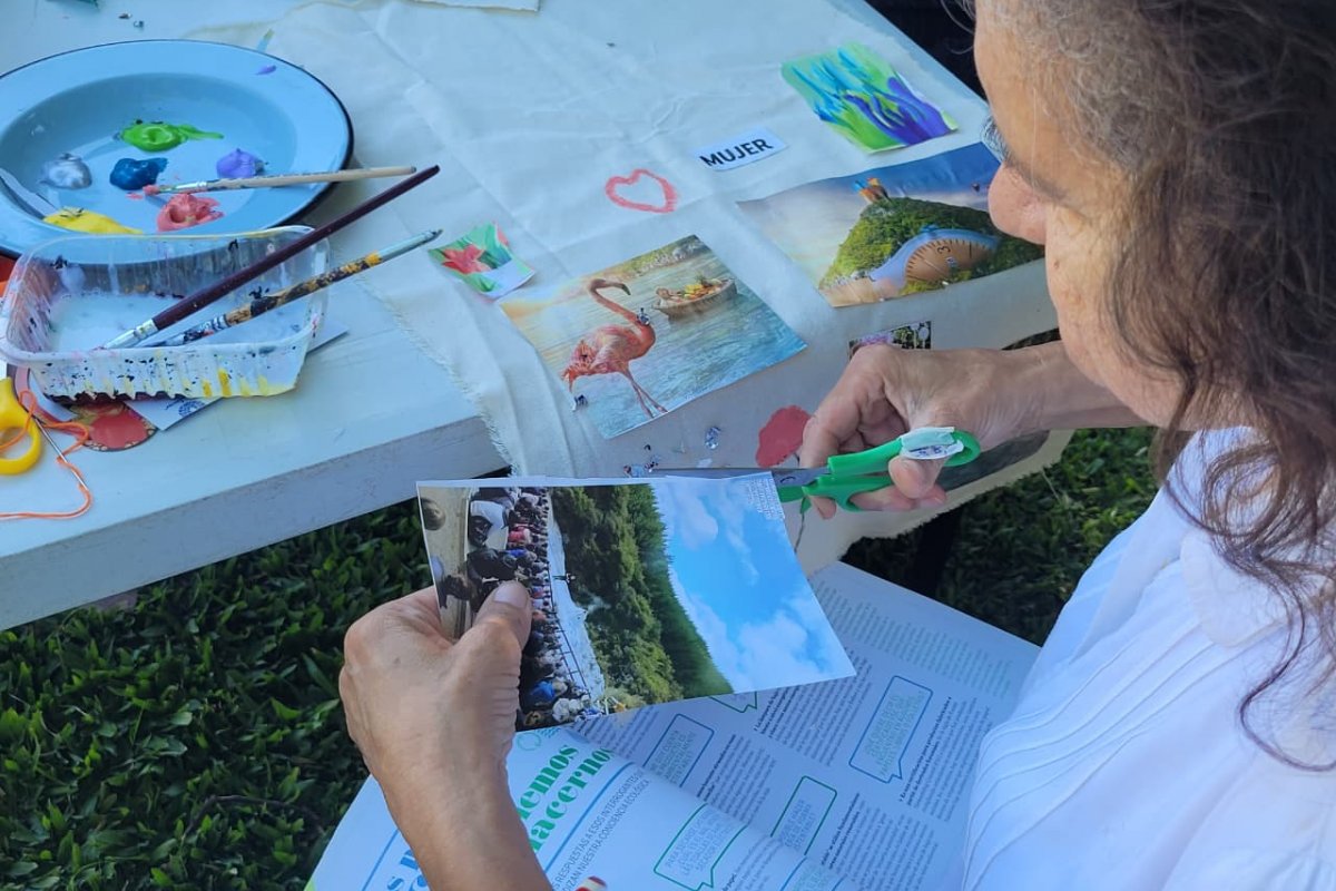 Durante la jornada, las participantes llevaron adelante un collage colectivo, una dinámica artística que permitió expresar emociones, ideas y miradas sobre el cuidado, los vínculos y la igualdad. A través de imágenes, colores y palabras, la propuesta buscó habilitar nuevas formas de representación y diálogo en torno a la construcción de relaciones más respetuosas y libres de violencia.