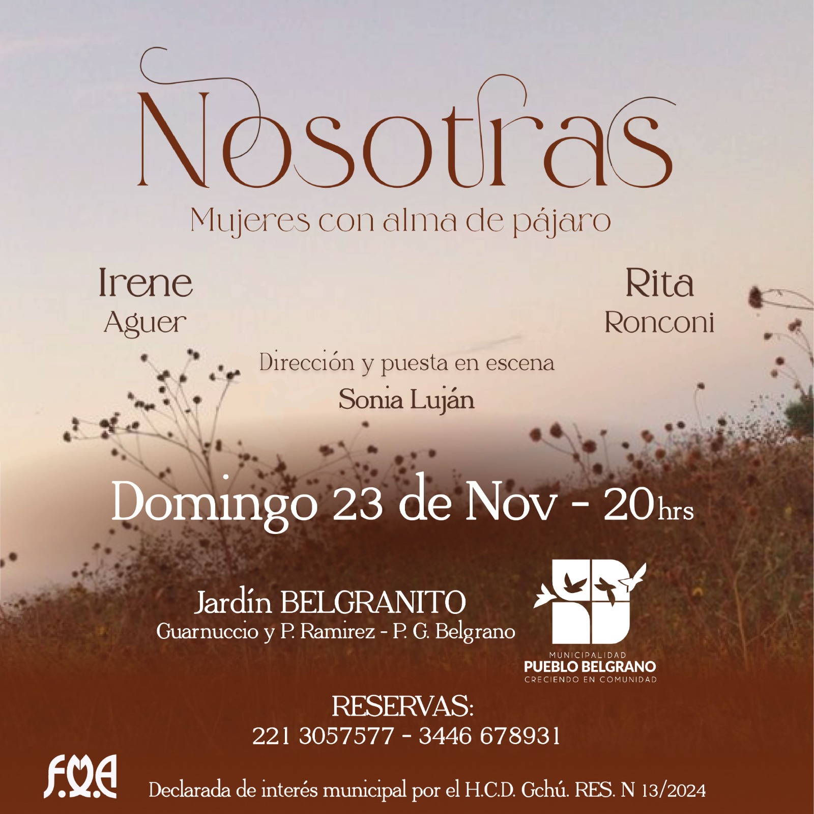 Ponemos en escena nueve poemas de poetas entrerrianas, inspiradas con la música de @silvia.teijeira.musica. Es una obra conceptual sobre una mujer conectada con sus emociones, amiga, hermana, compañera… simple, y compleja a la vez… evocando un universo de belleza y paz. Dirigida por Sonia Luján, actuada por Rita Ronconi e Irene Aguer y con la técnica de Gimena Antúnez.