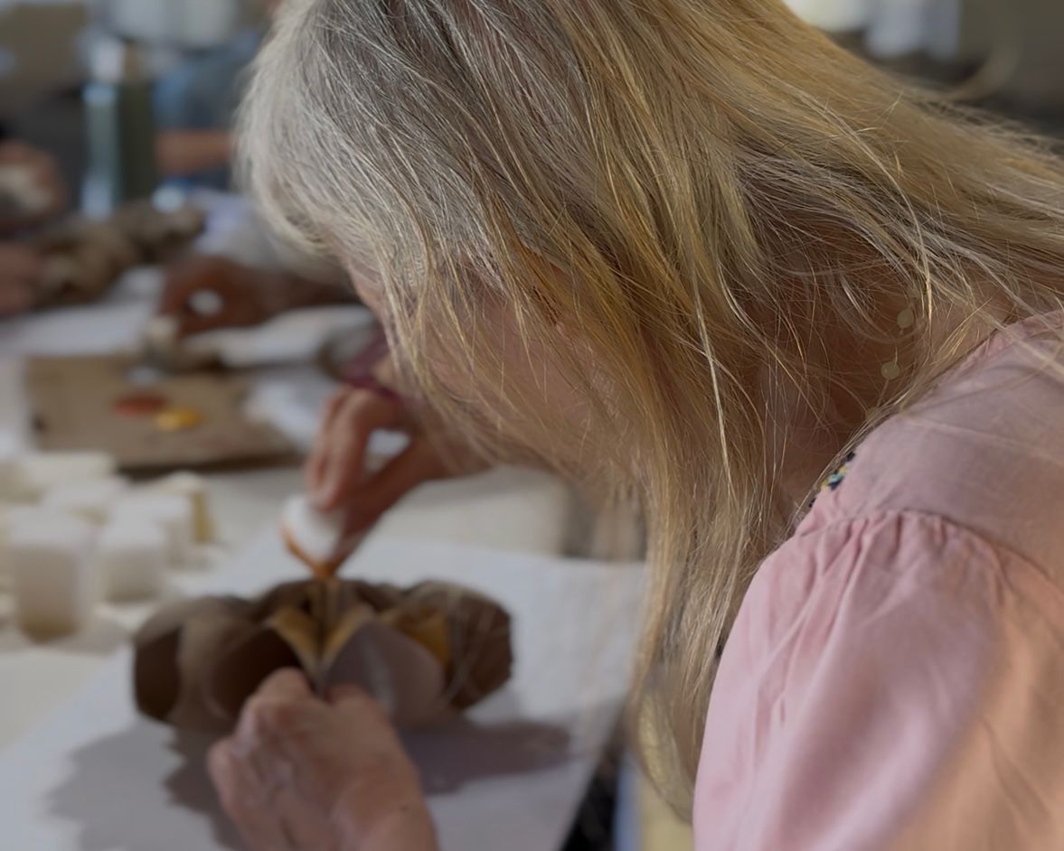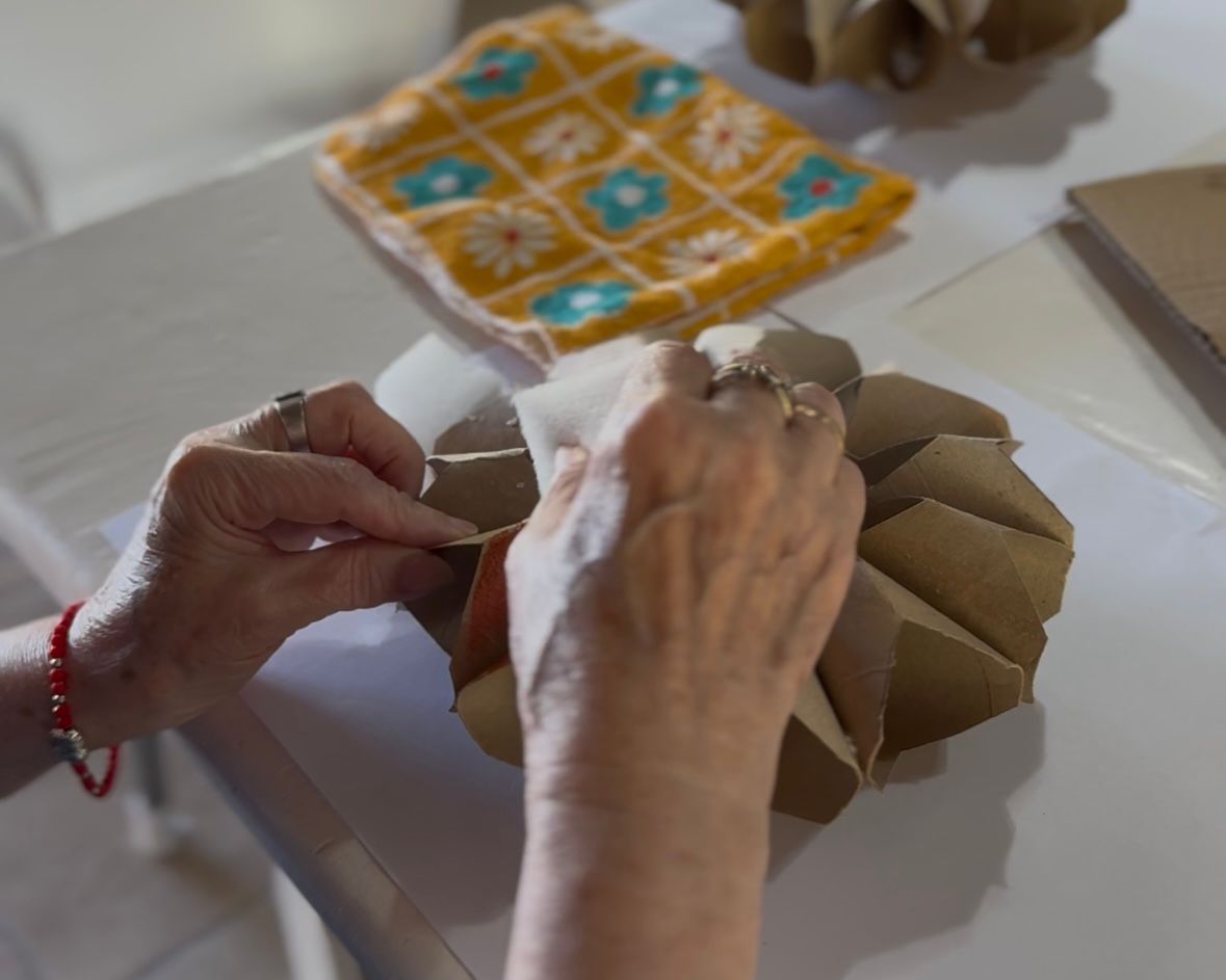 En esta etapa del año, el grupo orientó su trabajo a la elaboración de la decoración navideña del Centro. Como en cada fecha especial, los asistentes colaboran en la ambientación de los espacios, lo que genera una instancia de intercambio y construcción colectiva. Para las producciones se utilizaron lápices, fibras, pinturas, cartón y cartulina, materiales que permiten trabajar precisión, creatividad y concentración.