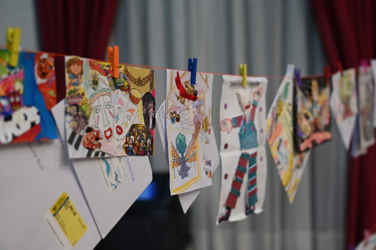 Durante la jornada se expuso la muestra de arte creada para aprobar el primer módulo “Historia del carnaval como patrimonio cultural”. La consigna consistió en producir una obra y enviarla en formato de carta postal, articulando memoria, identidad y estética.