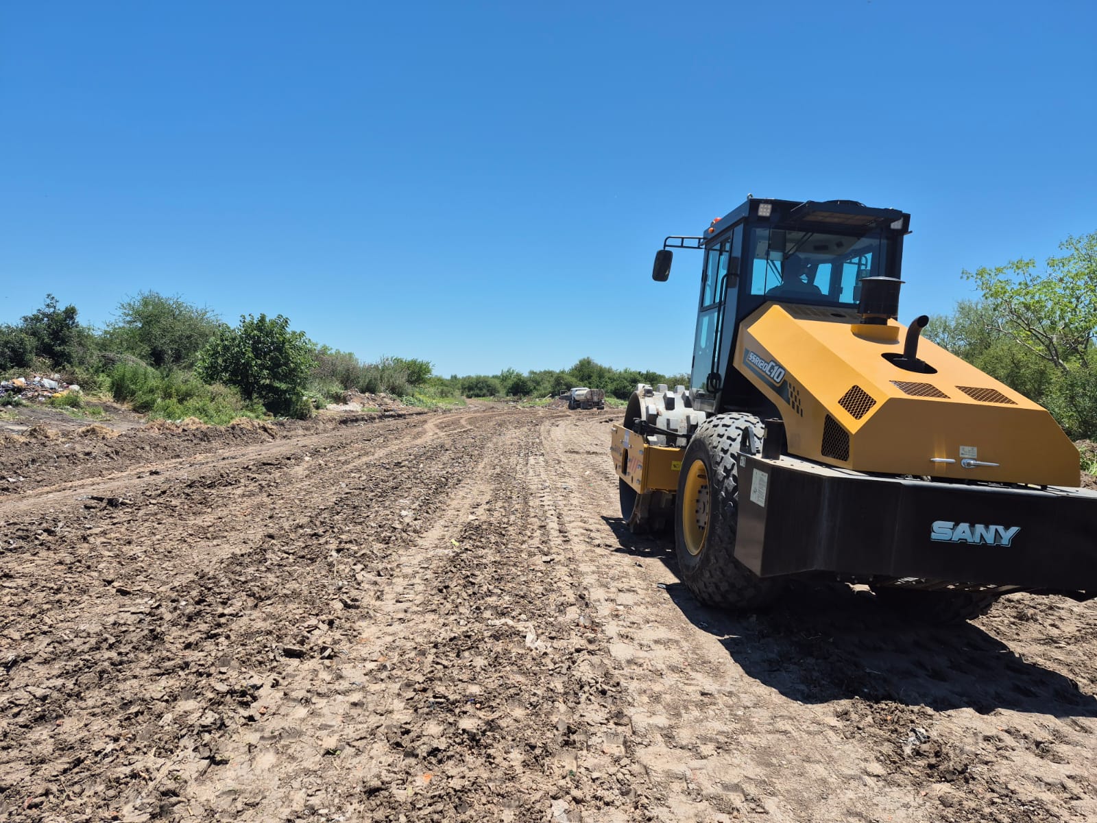 El material se extiende en capas de entre 10 y 20 centímetros de espesor, cada una compactada con equipos específicos como motoniveladoras, palas cargadoras, rodillos vibrantes y apisonadoras, lo que garantiza una distribución uniforme y una base resistente. Previamente, se efectuó la limpieza integral del área, con retiro de escombros y residuos.