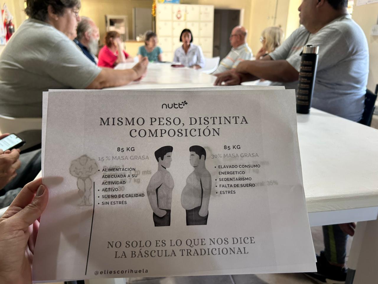La propuesta estuvo a cargo de la nutricionista Micaela Rolls y formó parte de las acciones de promoción de la salud orientadas al cuidado integral y al envejecimiento activo. Durante el encuentro se abordaron conceptos vinculados al IMC, su significado y su utilidad como indicador de salud, junto con la importancia de mantener una alimentación equilibrada adaptada a las necesidades de las personas mayores.