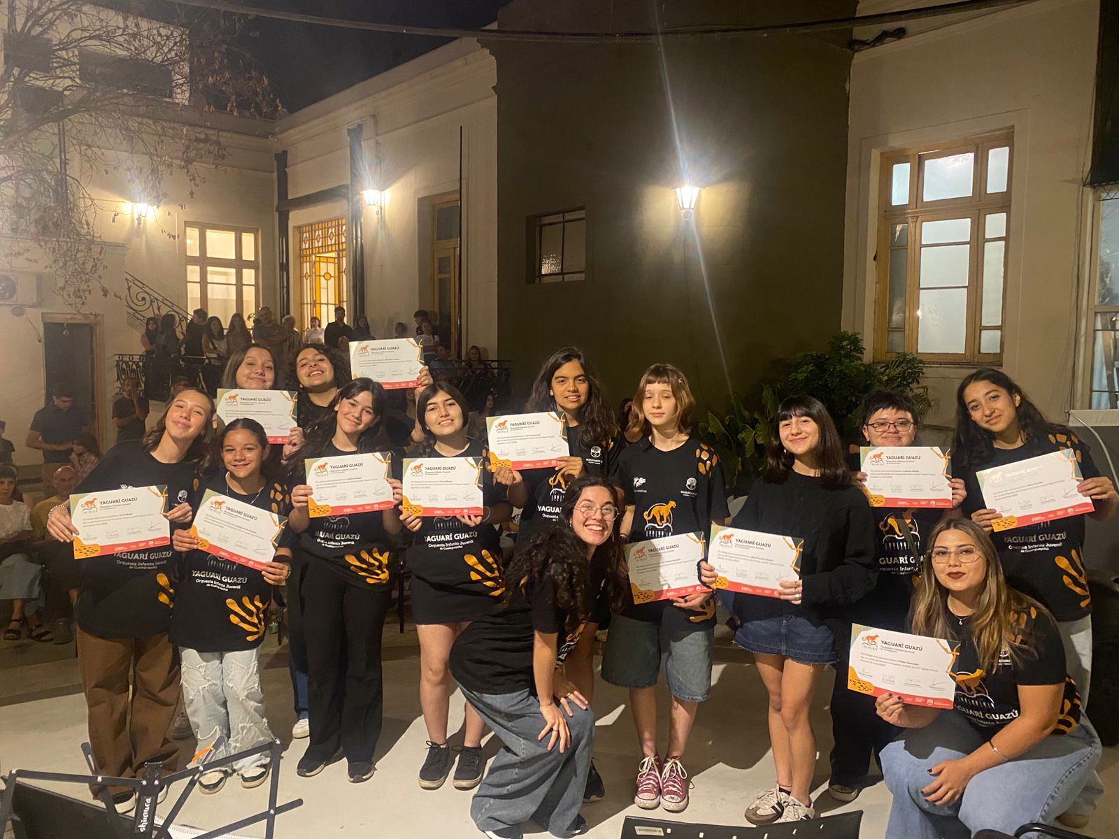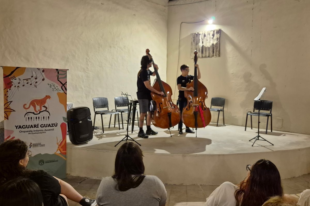 La Orquesta Yaguarí Guazú de Gualeguaychú celebró su cierre de año con dos jornadas consecutivas de presentaciones, el martes 16 y miércoles 17 de diciembre, en el Patio de De Deken. En el evento estuvieron presentes la viceintendenta de Gualeguaychú, Julieta Carrazza; el subsecretario de Cultura, Deportes y Juventud, Luis Castillo; los concejales Vanina Basaldúa, Raymundo Legaria y Juan Pablo Castillo, familiares, amigos y seguidores de la orquesta, quienes colmaron el espacio para acompañar y disfrutar del trabajo realizado durante todo el año por los estudiantes.