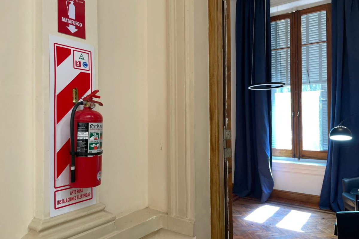 Asimismo, se llevó adelante la instalación de ocho nuevos extintores y la reorganización de los existentes, garantizando su correcta ubicación, accesibilidad y visibilidad en puntos estratégicos del edificio.
