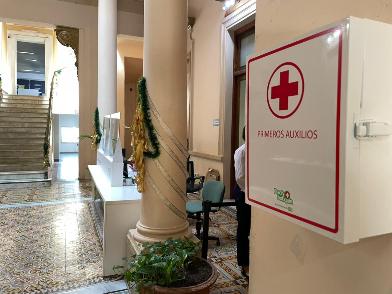 En este contexto, desde este lunes comenzó la colocación de botiquines de primeros auxilios en distintas dependencias municipales. Las tareas, que se extenderán hasta el viernes 26, están a cargo del Área de Seguridad e Higiene Laboral, dependiente de Defensa Civil, bajo la coordinación de su responsable, Ana Colazzo.