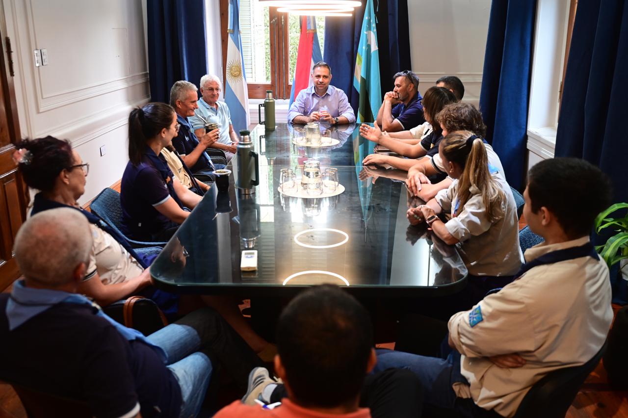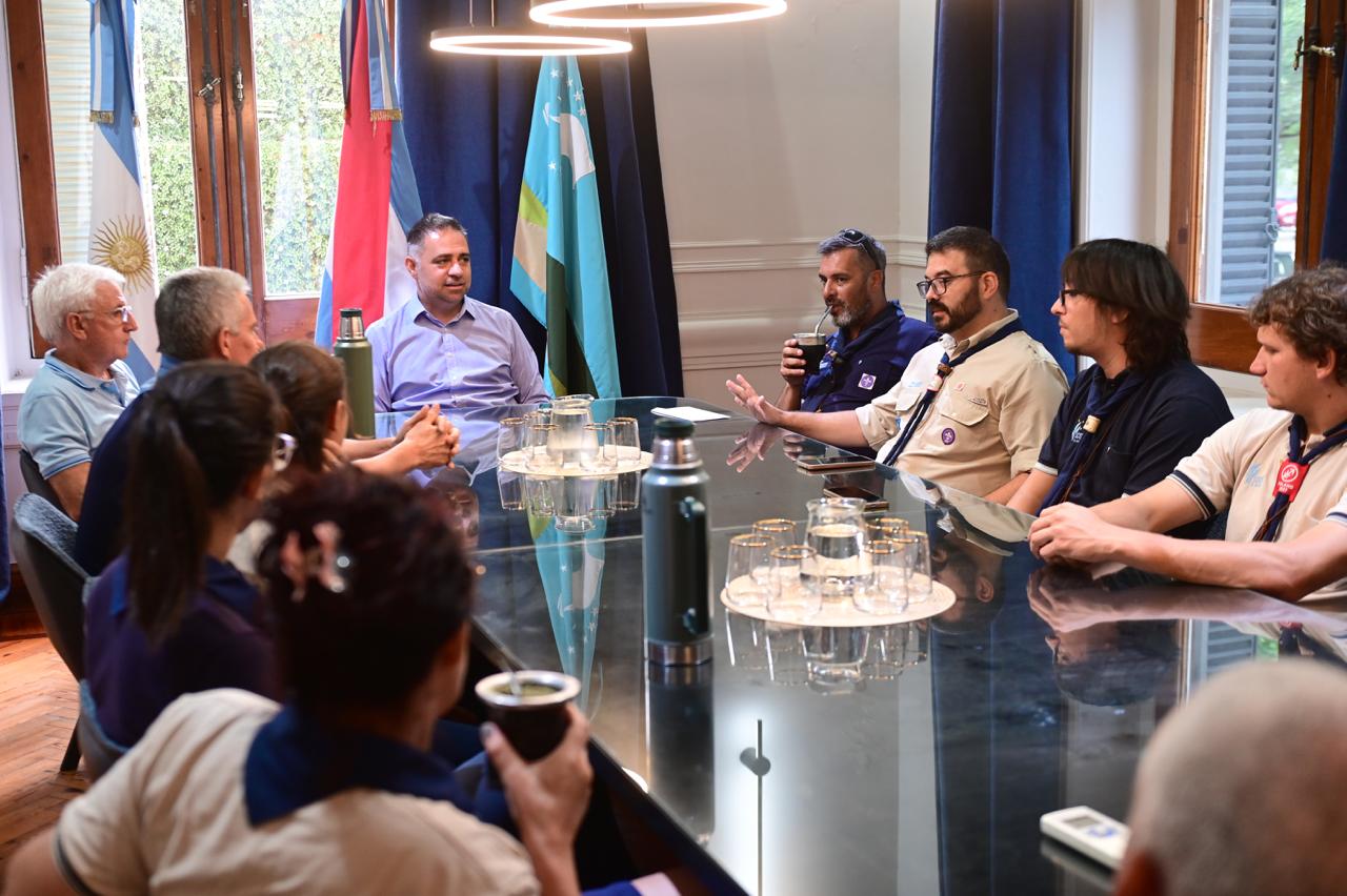 En el Salón Azul, el intendente Mauricio Davico encabezó una reunión junto al responsable de Relaciones Institucionales y Culto, Ricardo Rodríguez; el responsable del Área de Cooperativas, Joaquín Páez, y autoridades del movimiento scout, con el objetivo de fortalecer lazos institucionales y profundizar el acompañamiento a las actividades que desarrolla Scouts de Argentina en la ciudad y la región.