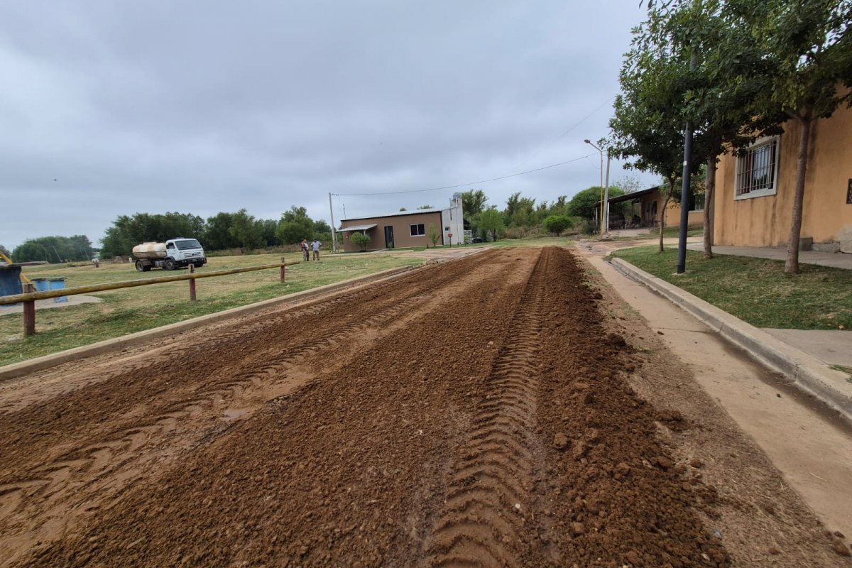Para el desarrollo de los trabajos intervinieron cuadrillas municipales y maquinaria pesada, entre ellas una destinada a la remoción de suelo excedente y una motoniveladora que cumple funciones de nivelación y conformación del camino. Estos equipamientos permitieron ordenar la superficie, corregir deformaciones y preparar la base para el refuerzo del firme.