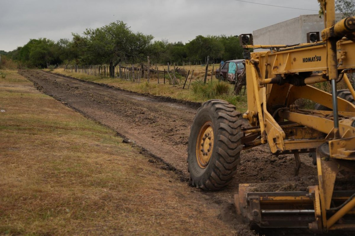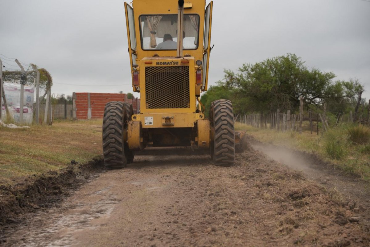 El esquema de trabajo incluyó mantenimiento vial con aportes de materiales, una metodología que permite recuperar superficies, consolidar trazas y extender la vida útil de calles que no cuentan con pavimento.