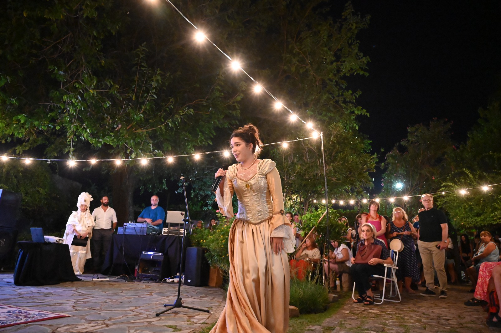 La velada culminó con la destacada actuación de la soprano Mercedes Barel Ledri, quien interpretó obras operísticas en el patio de la Azotea, brindando un cierre artístico de gran calidad.