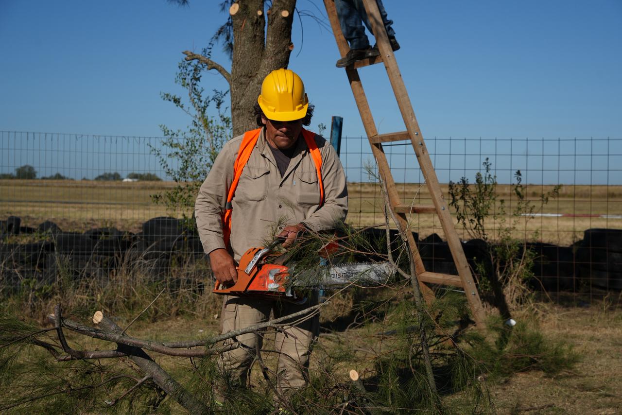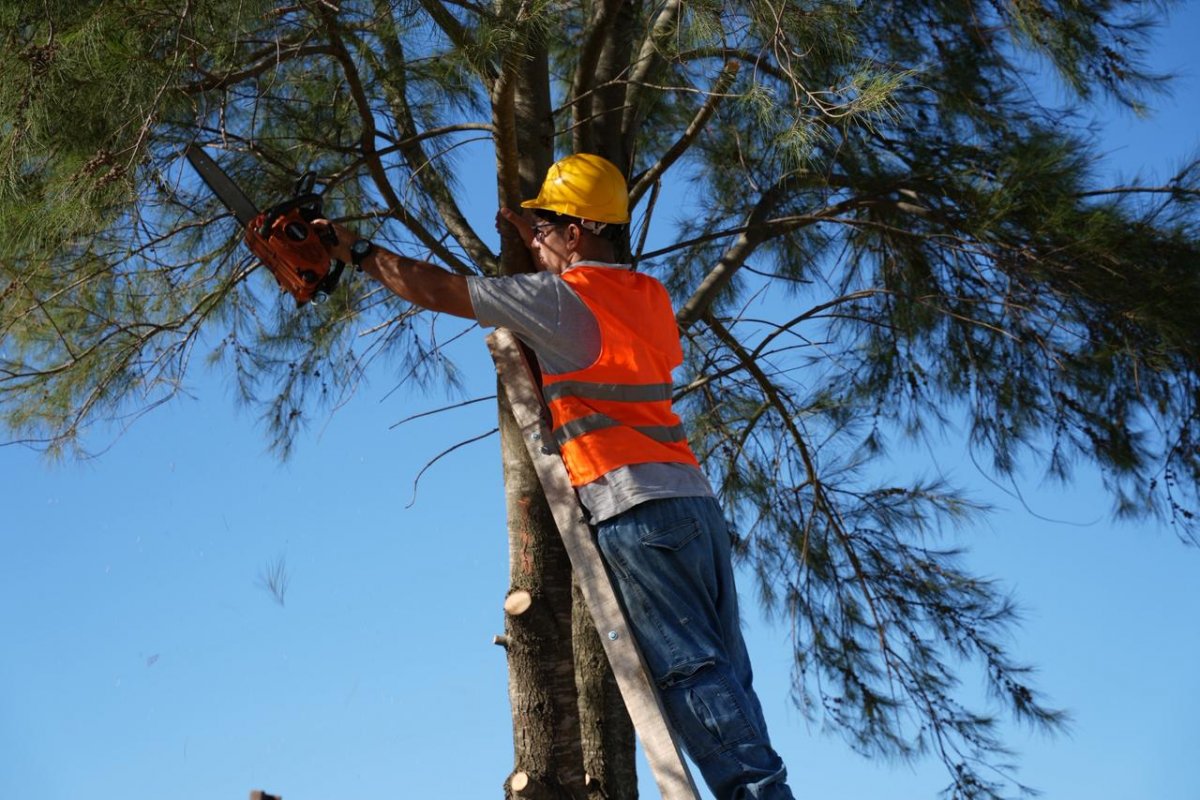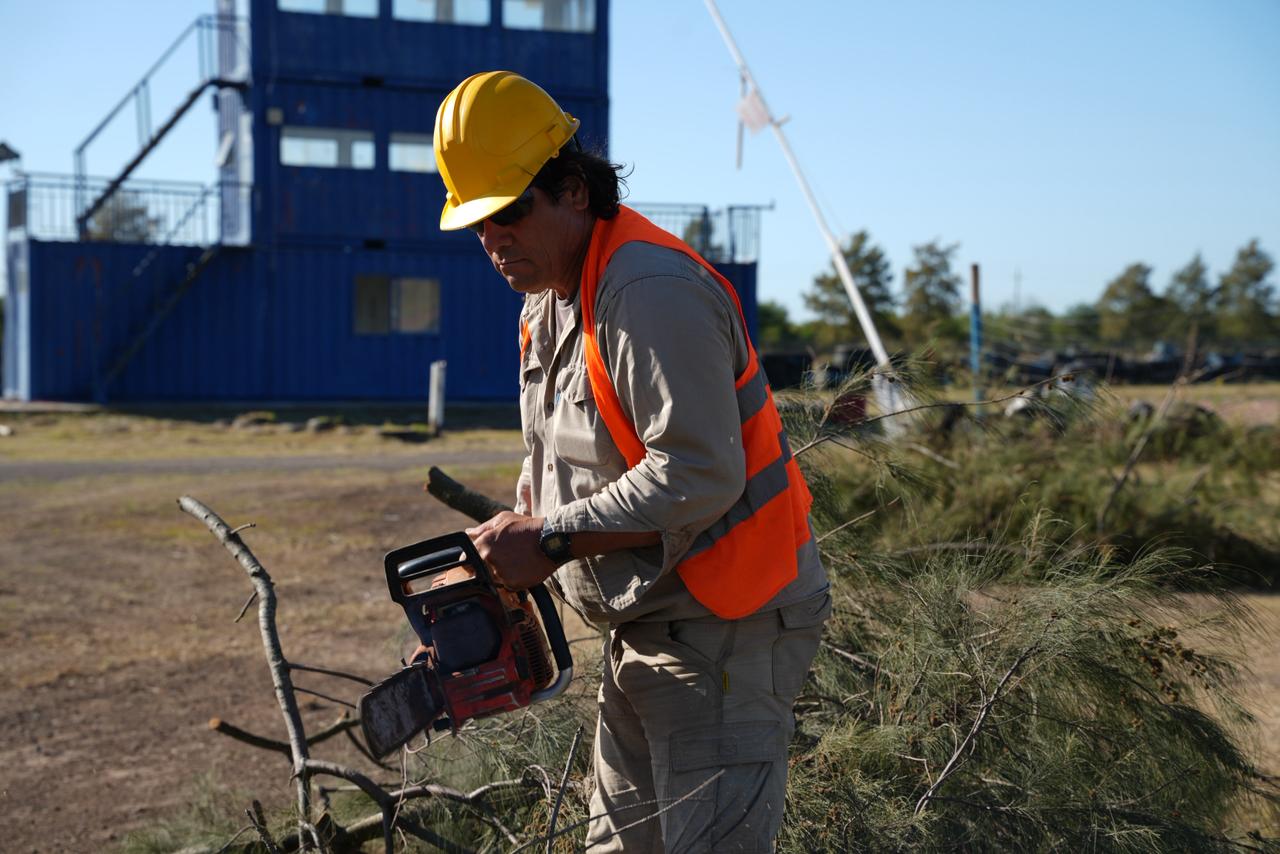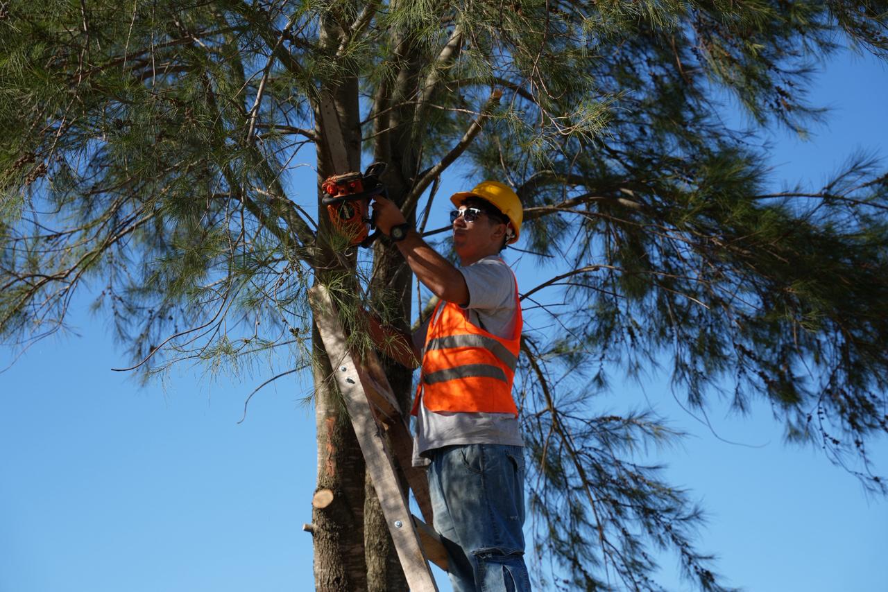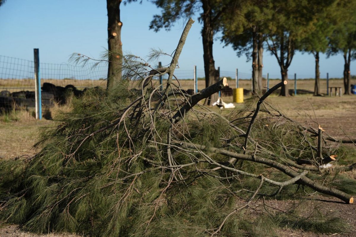 La Dirección de Espacios Verdes dispuso además un operativo sobre la arboleda implantada en el perímetro, ubicado a la vera de la Ruta Nacional 14, donde se realizó una poda de levante sobre ejemplares de casuarinas para mejorar su desarrollo y seguridad.