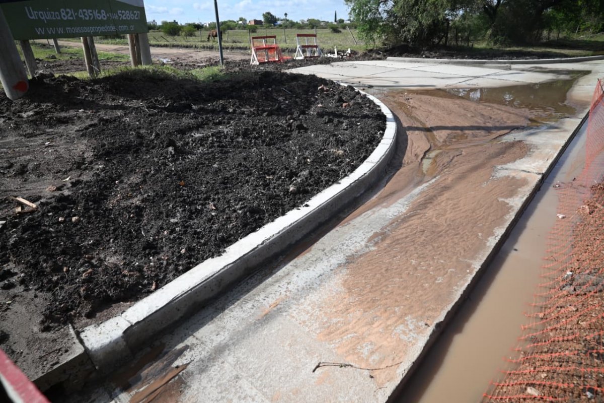En la actualidad, el nuevo desagüe pluvial sobre calle Rivadavia avanza con la finalización de los badenes, los accesos a las calles transversales y los detalles finos, como la barrera natural de césped sobre la zona de vereda para soportar la caída de agua de los terrenos baldíos de la zona.