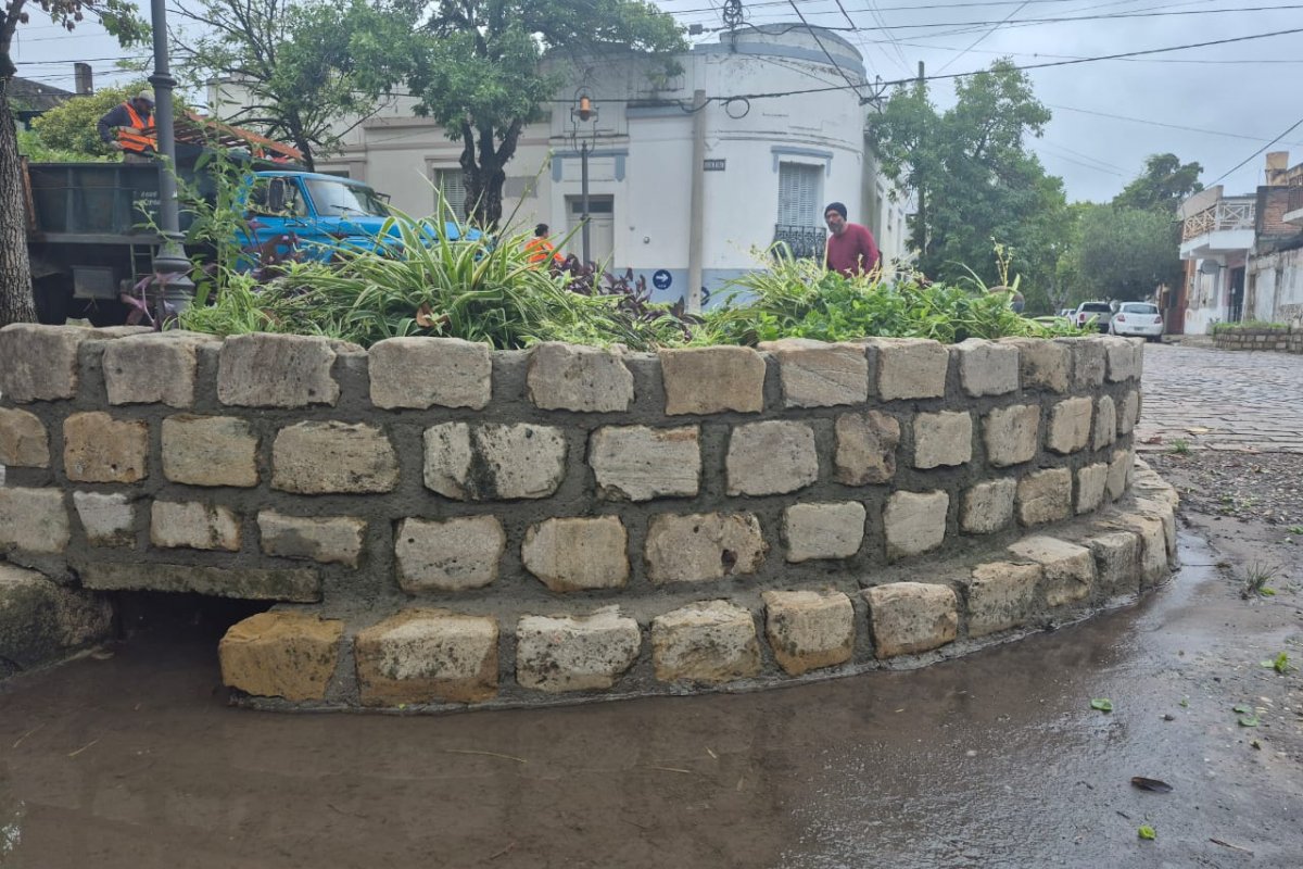 Por su parte, la Dirección de Obras Públicas centró su intervención en la recomposición de la calzada adoquinada, donde se detectaron piezas deterioradas y desniveles en la trama, sobre los que se ejecutaron tareas de ajuste, recolocación y corrección de imperfecciones, con el objetivo de recuperar la regularidad de rodamiento y prolongar la vida útil del pavimento en una zona de alta circulación.