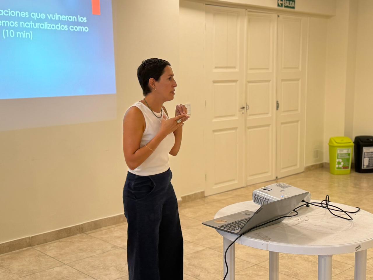 Durante la jornada se desarrollaron dinámicas grupales en las que las docentes trabajaron sobre distintos derechos, analizando cómo garantizar su cumplimiento, de qué manera detectar posibles vulneraciones y cuáles son las formas más frecuentes en que estas situaciones se presentan en la población con la que trabajan. Asimismo, se reflexionó sobre prácticas y situaciones que, en muchos casos, se encuentran naturalizadas socialmente.