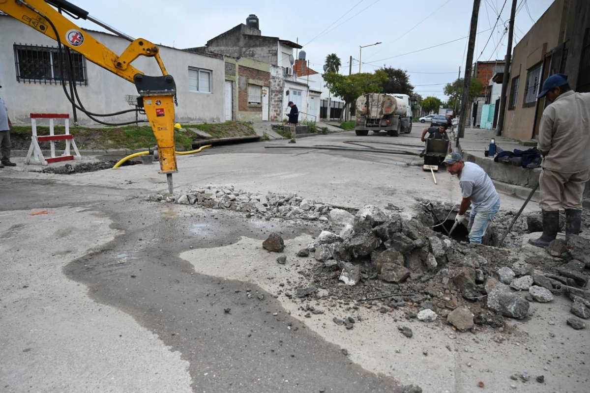 Ante esta situación, el equipo técnico resolvió avanzar con la demolición de seis metros lineales de pavimento para reemplazar el tramo comprometido mediante la colocación de nuevos caños de 600 milímetros de diámetro, una acción que permitirá restituir la sección hidráulica necesaria para el correcto escurrimiento.