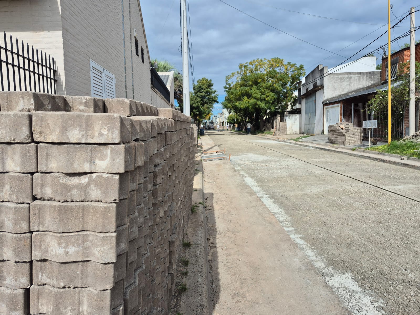 Sobre la subrasante compactada y consolidada —con un espesor especial de 20 centímetros— se vierte luego la losa de hormigón H-13 de 15 centímetros de espesor, una capa que le otorgará al pavimento la capacidad portante necesaria y que, al mismo tiempo, actúa como barrera impermeable para bloquear el ascenso de humedad desde el subsuelo, una de las causas históricas del deterioro prematuro de los adoquinados urbanos.